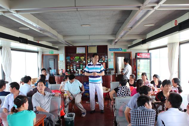 登上沁園07號游船,我們此次千島湖之旅算是正式開始了。泛舟于“天下第一秀水”,放眼望去,碧波無邊,群島競秀,真是“千島碧水畫中游”。大家正靜靜地陶醉在窗外的無邊美景當(dāng)中,忽然間旁邊游船上有人釣起來一尾一尺多長的大魚,讓我們興奮起來,也算見識了這里魚兒的肥美。